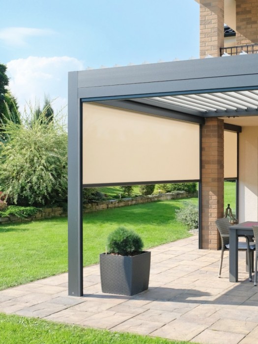 - Štít proti počasí: Hliníkový pancíř uzavře prostor pergoly proti sněhu, dešti i nafoukanému listí. Na jaře rolety jednoduše vytáhnete a posezení je čisté a připravené k použití.