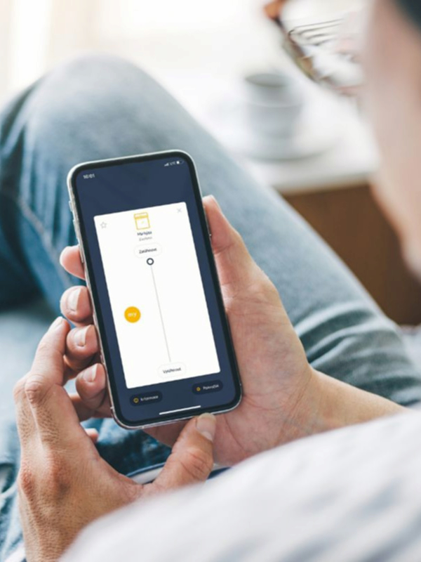 - Motoricky: Komfortní ovládání tlačítkem na zdi, přenosným dálkovým ovladačem nebo přes mobilní aplikaci.