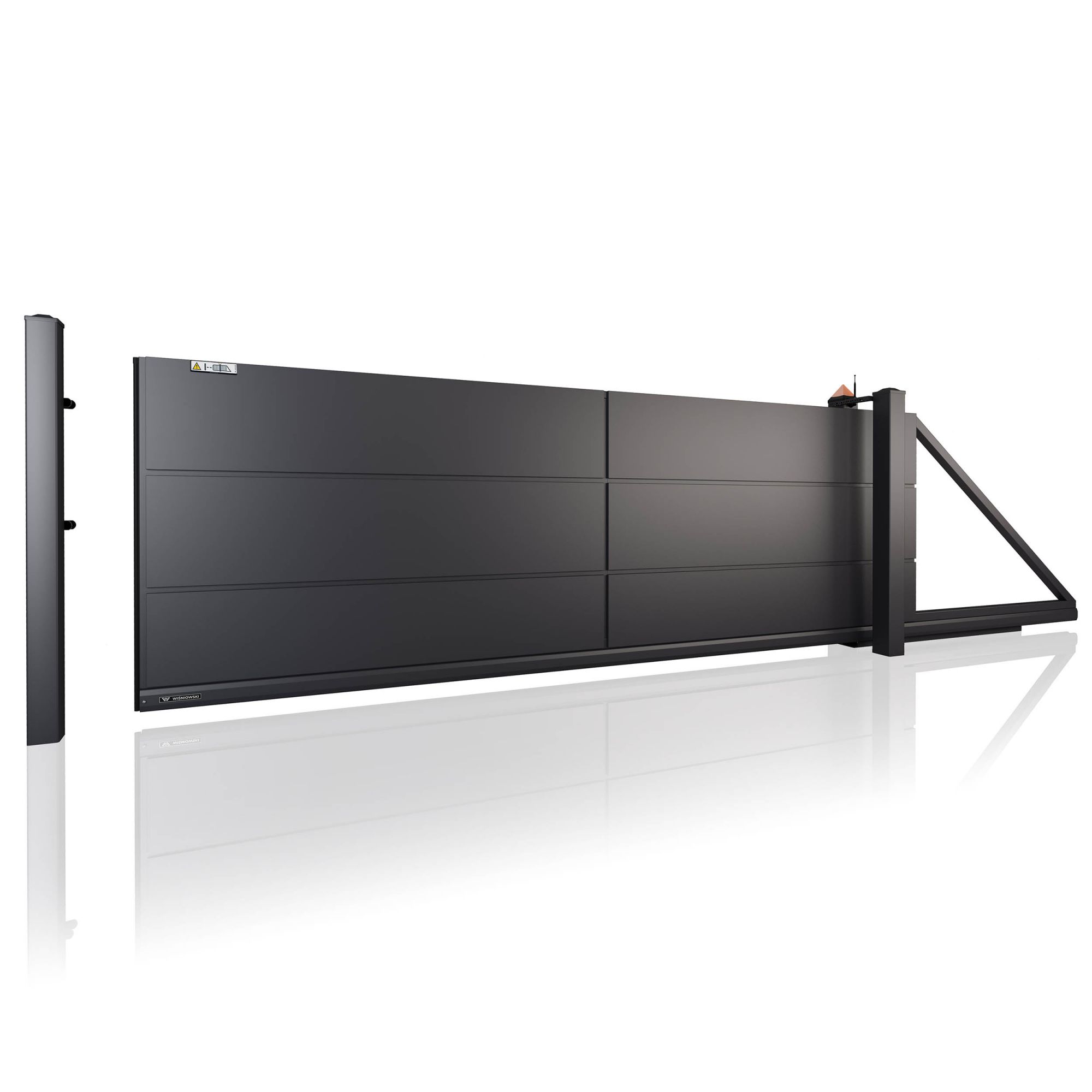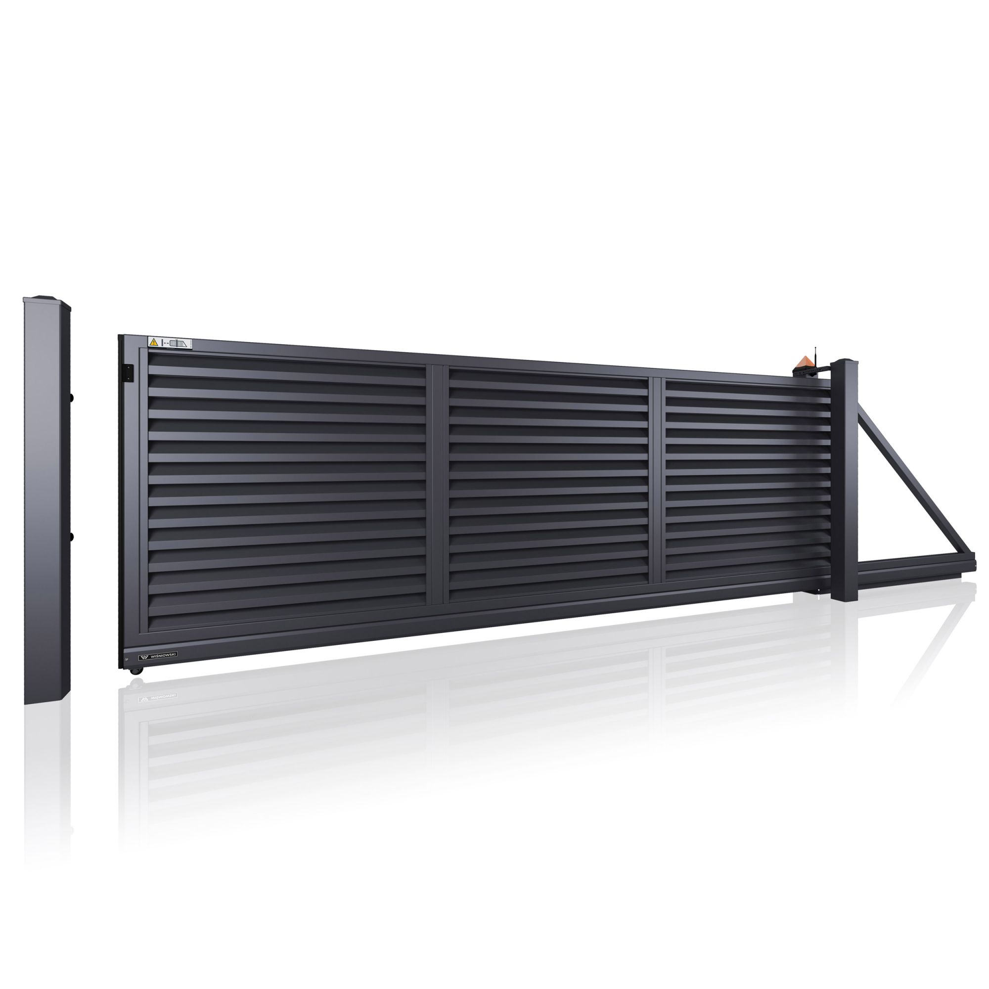 Brána je vedena v nosném C-profilu a k jejímu otevření je potřeba boční prostor o délce průjezdu plus cca 1/3 délky na tzv. vyvažovací část. Jsou ideální volbou pro většinu rodinných domů, kde je podél plotu dostatek místa pro odsunutí.