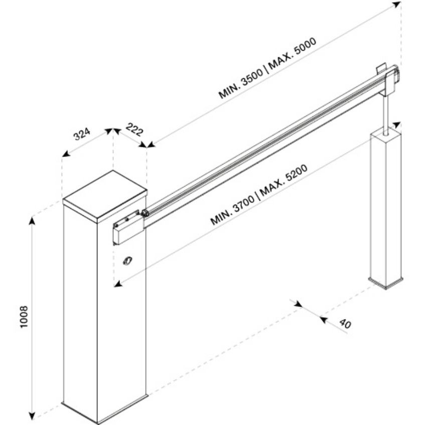 - Délka ráhna: Hliníkové rameno 5,2 m (zkracuje se na přesnou míru vjezdu)