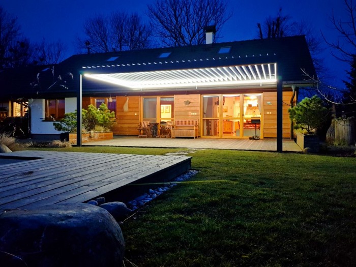 rodinného domu montována bioklimatická pergola o rozměrech 7×4m se
