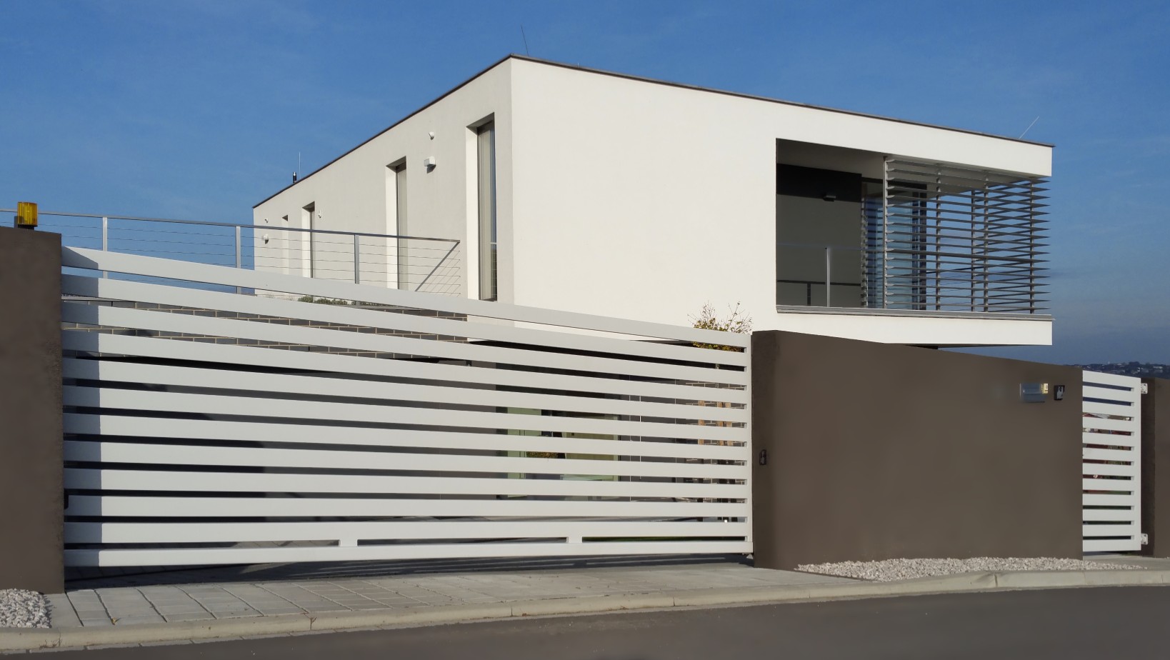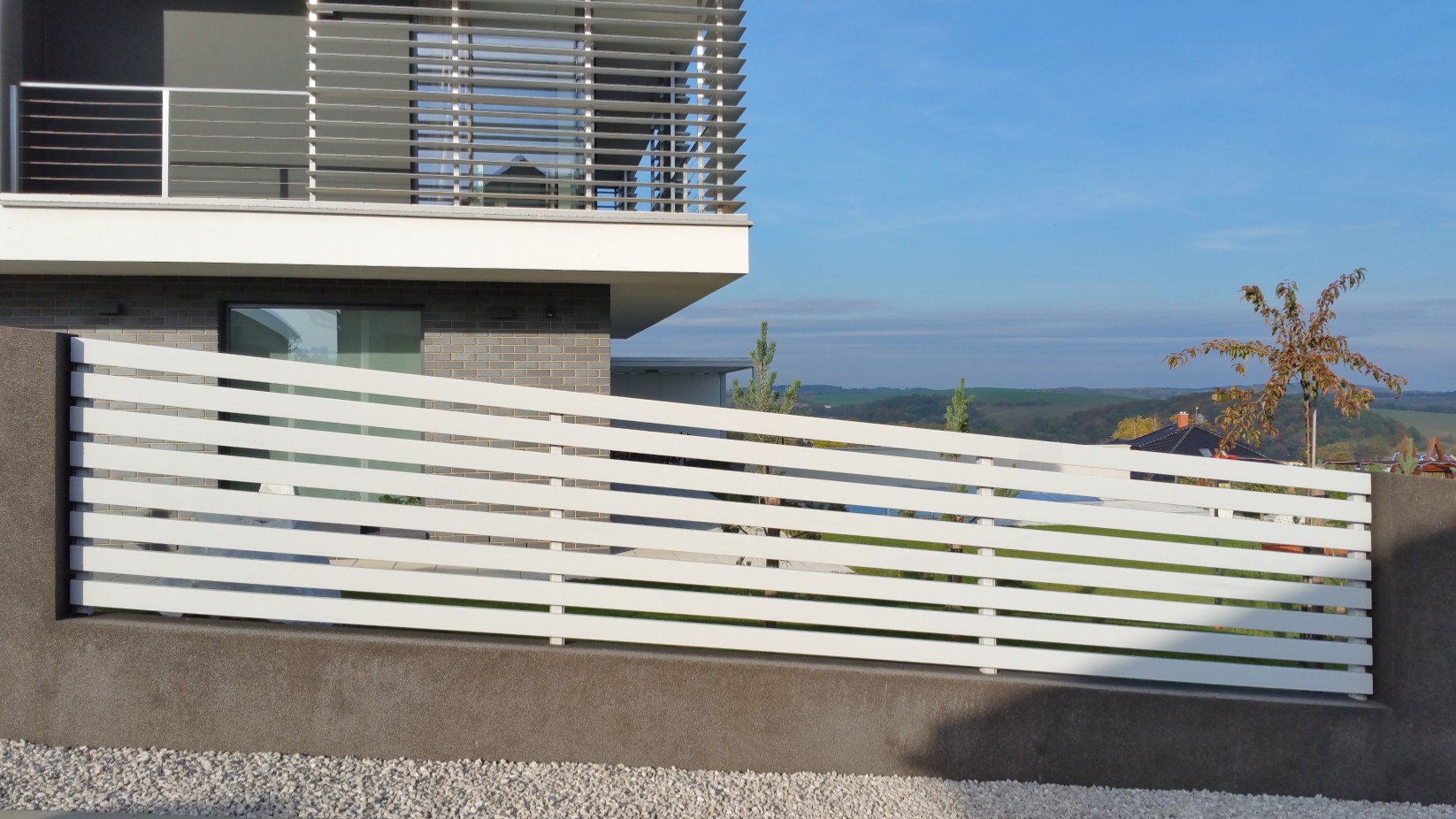 Pro celé oplocení byl zvolen odstín bílá RAL 9010, který podtrhuje minimalistický ráz konstrukce. Světlý tón navíc dodává prostoru vzdušnost a výborně ladí s moderní architekturou rodinného domu.